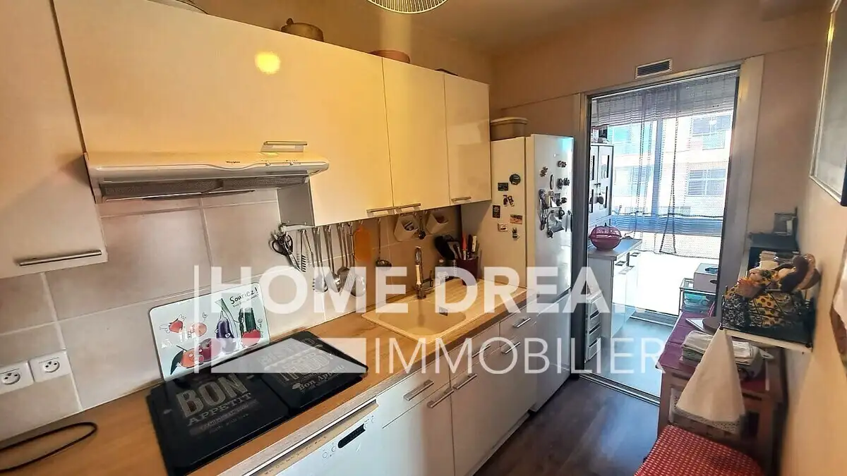 Il est composé d'un vaste séjour lumineux donnant sur une grande terrasse de 12 m² avec aperçu mer, d'une cuisine entièrement équipée, d'une chambre avec placard, une salle d'eau, de nombreux rangements, cave et parking collectif à la copropriété.