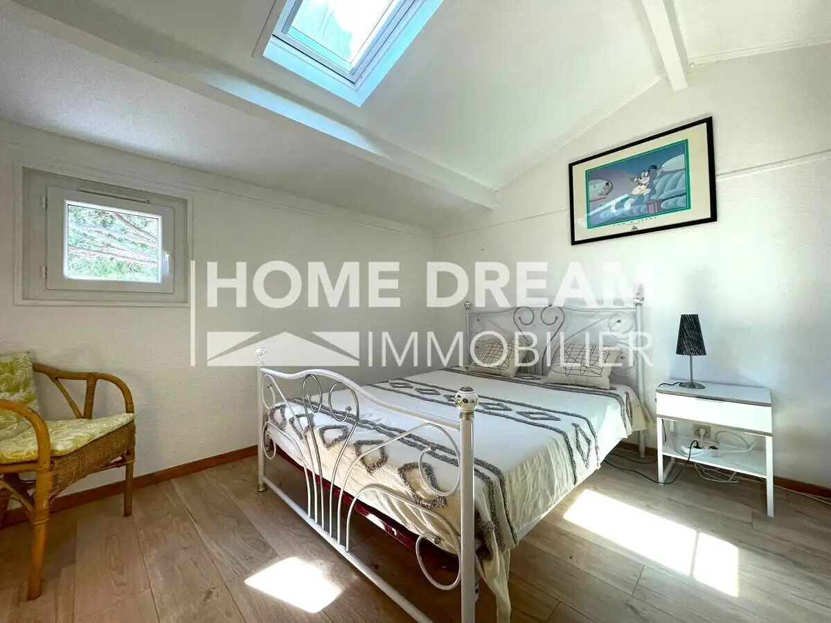 De plain pied, nous trouvons un coin nuit avec placards, un joli séjour donnant sur une grande terrasse vue mer, une cuisine américaine équipée, une salle de bain et un wc.