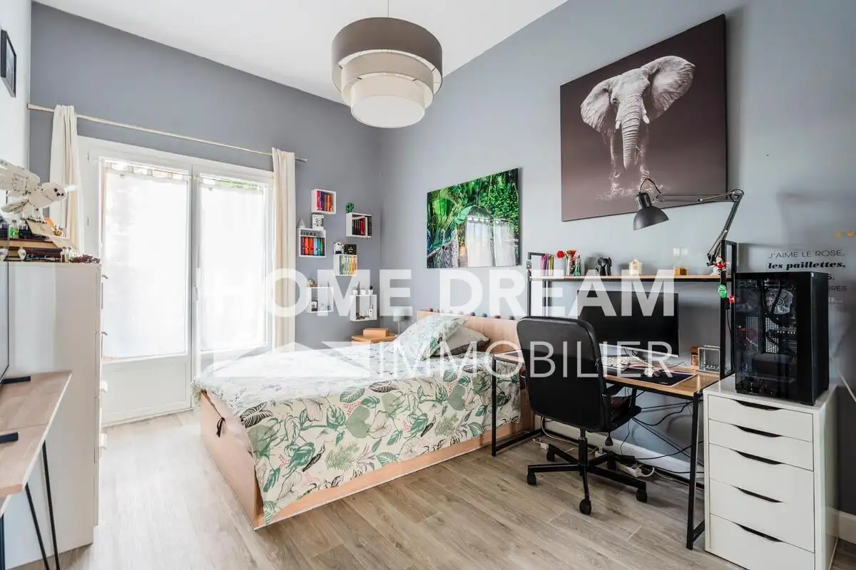 Il est composé d'un vaste salon séjour lumineux de 46m², d'une jolie cuisine américaine entièrement équipée, de 4 grandes chambres aménagées avec de nombreux rangements, une salle d'eau et une salle de bain, deux parkings privatifs et une cave viennent completer ce bel ensemble.