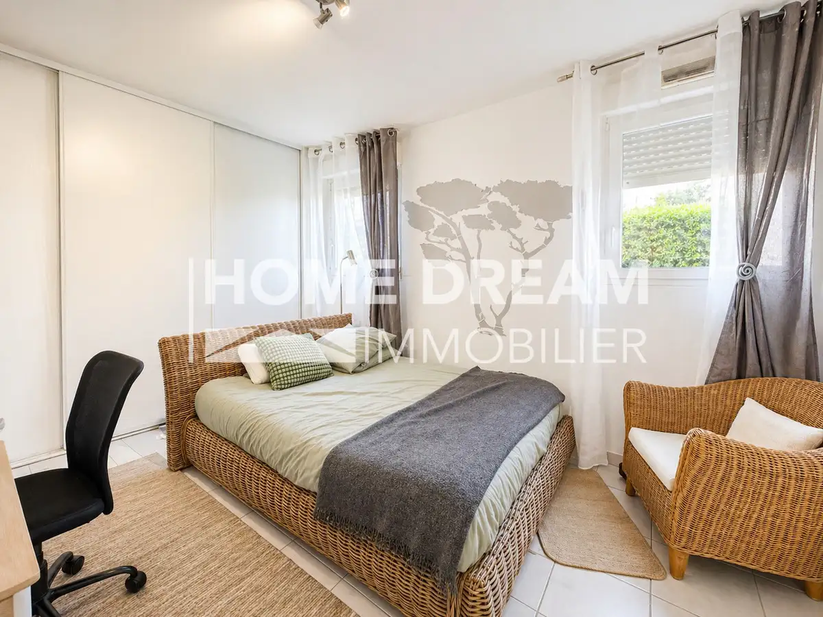 Dès l’entrée, vous serez séduit par un spacieux séjour lumineux de 26 m², prolongé par une élégante cuisine américaine entièrement équipée. L’ensemble s’ouvre sur un magnifique jardin privatif de 30 m² clos, arboré et sans aucun vis-à-vis, offrant un véritable havre de paix.