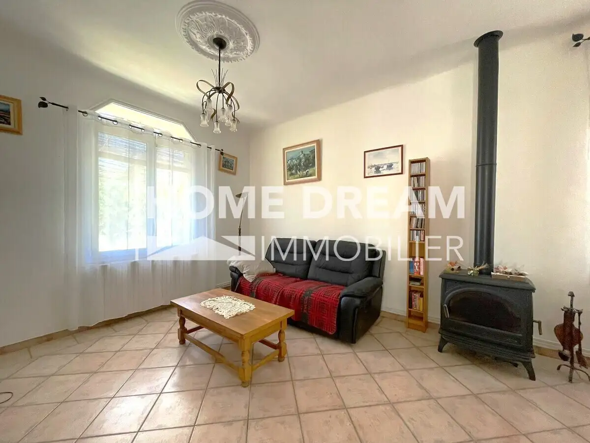Nous vous proposons d'acquérir cette magnifique villa 5 pièces de 102 m²,< de plain pied, accompagnée de 2 garages plus un grand atelier, le tout niché sur un magnifique terrain plat de 991 m², entièrement clôturé et paysagé.